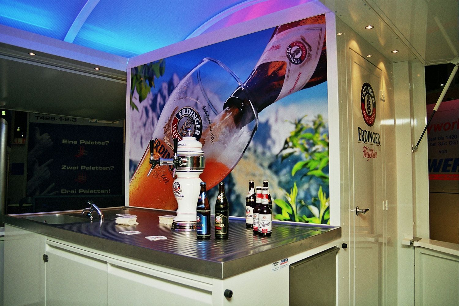 Er bietet neben einem integriertem Kühlhaus eine ausklappbare Außenansicht mit ca. 14 m Theke und einer sehr edel wirkenden beleuchteten Wandseite.