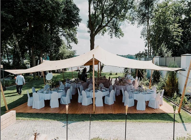 Ganz neu ab Frühjahr 2026 haben wir unser Sortiment um Stretchzelte erweitert. Die Größen 10x7,5m und 10x15m sind ideal für Hochzeiten, Firmenevents, private Partys – sehr individuell kombinierbar und auch mit Dachrinnen verbindbar bis auf 10x22,5m – der WOW-Effekt für Ihren Event. Ideal mit unserem Holzfußboden und Partylichterketten kombinierbar.