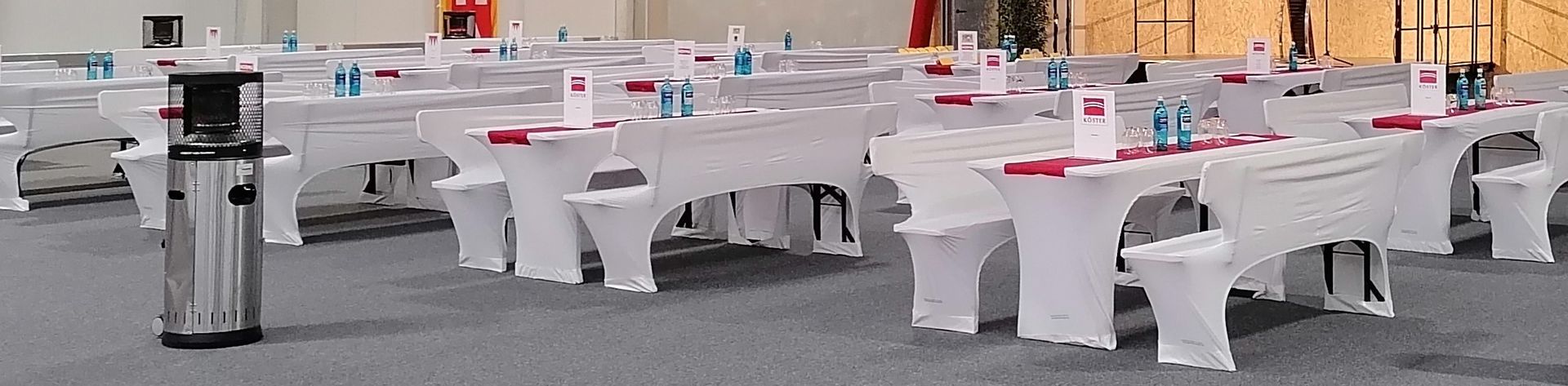 Mit unseren Hussen verpassen wir gern allen Stühlen, Bänken und Tischen einen optisch anspruchsvollen Touch. In unserem Zeltverleih Getränke Wagner finden Sie daher neben Stuhlhussen auch exklusive Stretchhussen für elegant aussehende Stehtische oder klassische Überwerfer für die Tische Ihrer Wahl aus unserem Angebot.