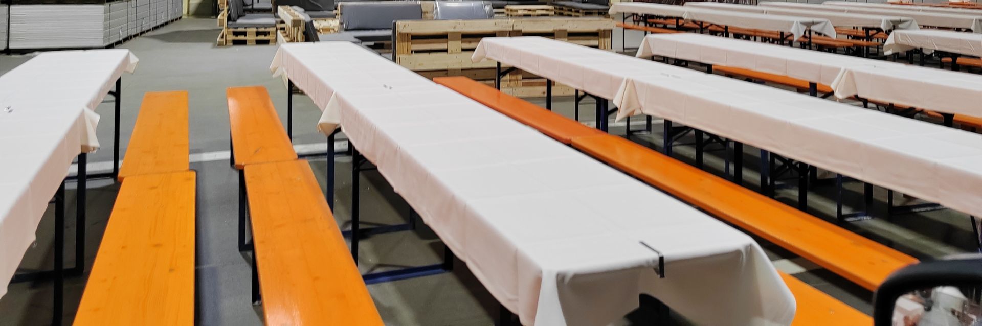 Wir von Zeltverleih Getränke Wagner in Prichsenstadt verleihen auch Tische und Bänke für Ihre Feierlichkeiten. Bei uns können Sie klassische Bierzeltgarnituren ausleihen, die sich ideal für Familienfeiern, Betriebsfeste und andere gesellige Aktivitäten eignen, bei denen gegessen und getrunken wird. Die Garnituren bieten Platz für zahlreiche Gäste und sind robust und pflegeleicht. Für Empfänge, Tagungen und Firmenjubiläen sind unsere edlen runden Tische ideal. Die Stehtische versehen wir gerne mit passenden Tischdecken, Hussen und Dekorationen, die zum Motto Ihres Events passen. Weiterhin können Sie eckige Bankett-Tische und Loungemöbel bei uns ausleihen. Wir liefern alle Tische und Bestuhlungen bei Ihnen vor Ort an, bauen sie auf und holen Sie nach Ihrem Fest wieder ab.