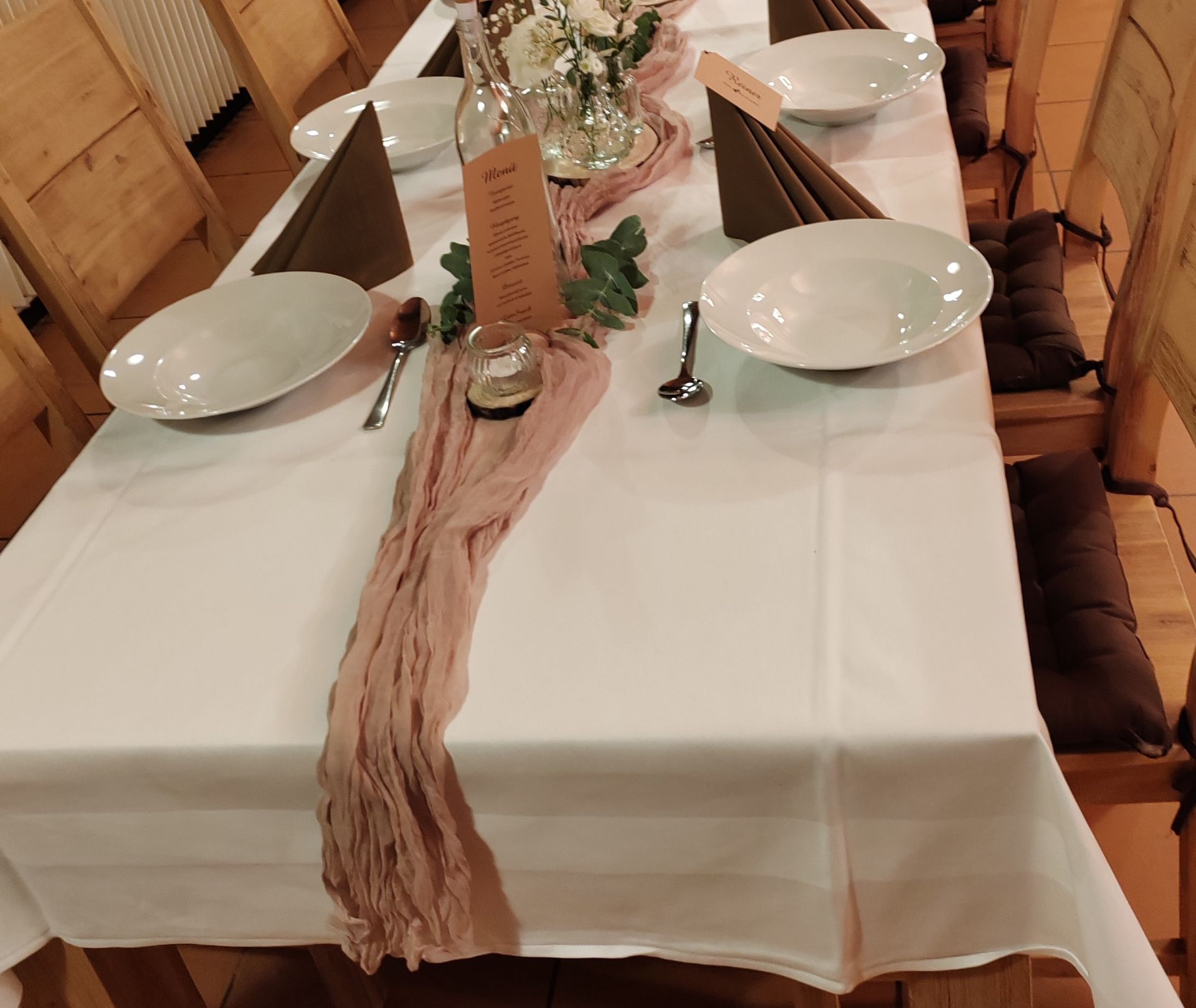 Wenn Sie passende Tischdecken in eckiger oder runder Form suchen finden Sie diese auch in unserem Verleihsortiment. Bequeme Sitzkissen zu den jeweiligen Stühlen zählen wir ebenfalls zu unserem Angebot. Falls Sie gern farbliche Akzente setzen wollen, bieten wir Ihnen zudem rustikale Bankauflagen. Diese erhalten Sie je nach Geschmack rot-weiß oder grün-weiß kariert. Die Preise für unsere Tischwäsche gestalten sich zzgl. Reinigungsgebühr. Hierzu informieren wir Sie gerne, kontaktieren Sie uns.